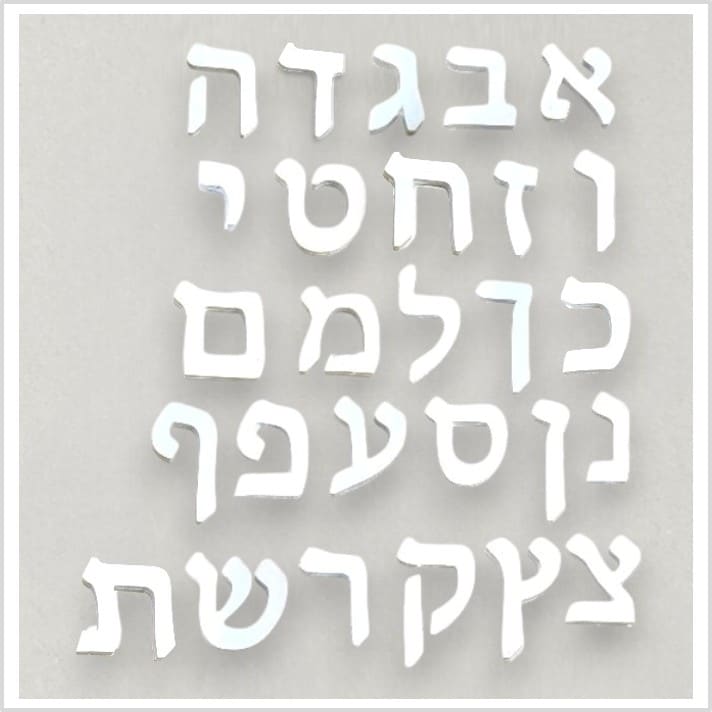 האותיות בכתב דפוס בעברית צבוע בצבע לבן