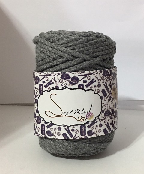חוט מקרמה- חבל מקרמה עובי 4 מ"מ- אפור כהה