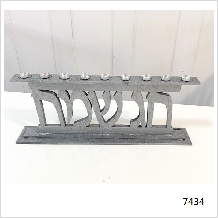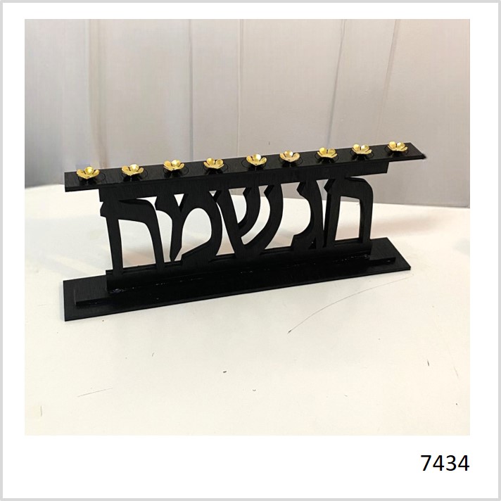 חנוכיה מעץ- דגם חג שמח- שחור/ כסוף
