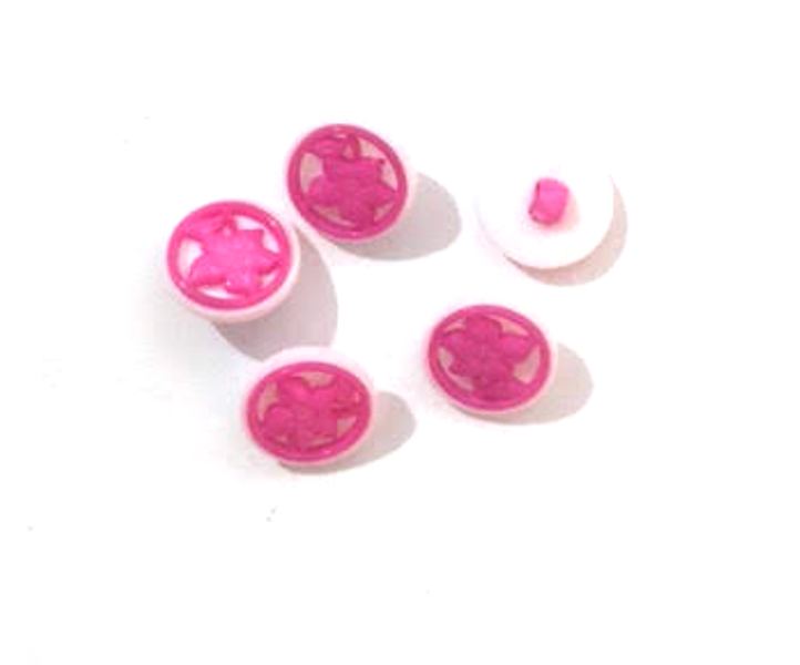 כפתורים- כפתור פלסטיק פרח במסגרת 15 מ"מ בצבע ורוד