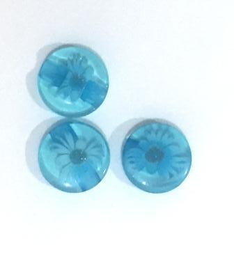 כפתורים- כפתור פלסטיק פרח 'זכוכית' בצבע טורקיז 13 מ"מ