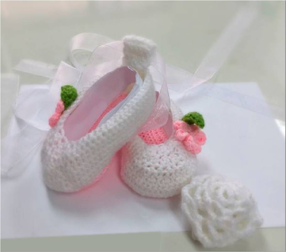 נעלי תינוק סרוגות- נעלי תינוק דגם בלרינה מחוט-השני נסרגות בעבודת יד מחוטים איכותיים