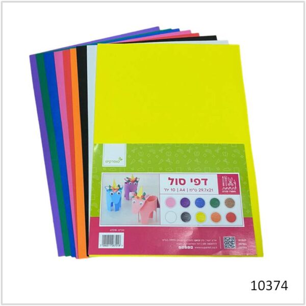 סול- מארז 10 יחידות דפי סול צבעוני A4 לעבודות יצירה והדבקה