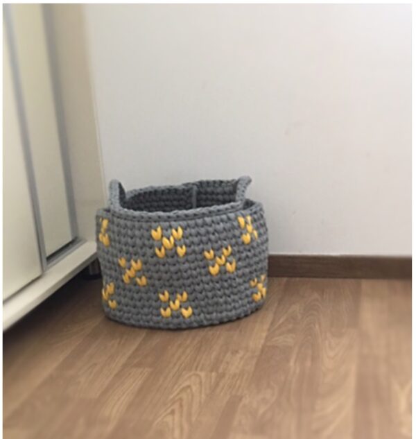 סל כביסה סרוג עם ידיות אחיזה, סל טריקו, סלסלה סרוגה- סלסלות וסלים מטריקו של חוט השני נסרגים בעבודת יד מחוטי טריקו איכותיים.