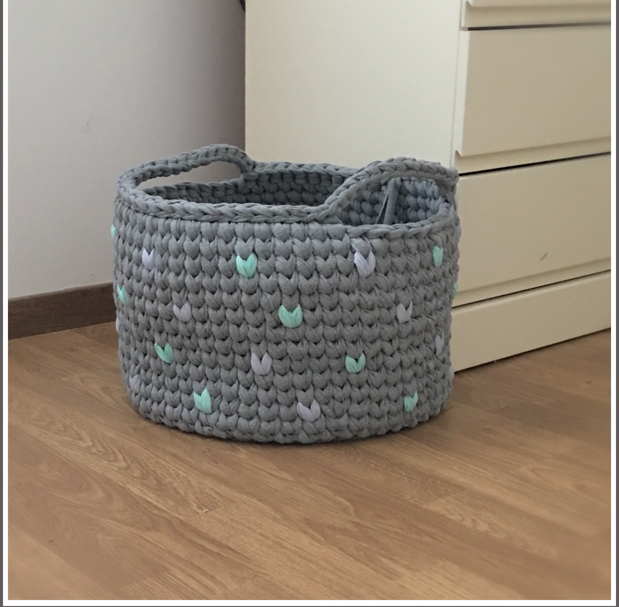 סל כביסה סרוג עם ידיות אחיזה, סל טריקו, סלסלה סרוגה- סלסלות וסלים מטריקו של חוט השני נסרגים בעבודת יד מחוטי טריקו איכותיים.