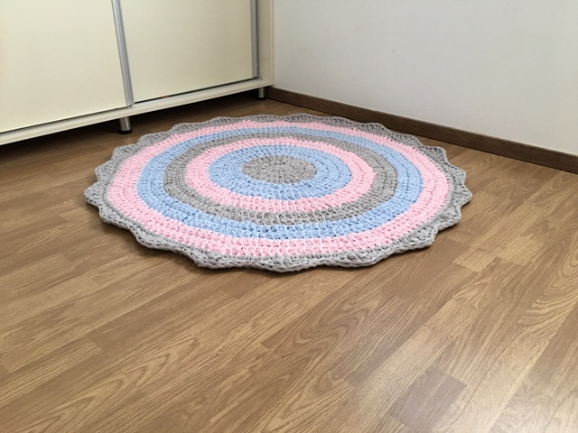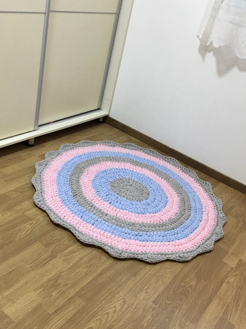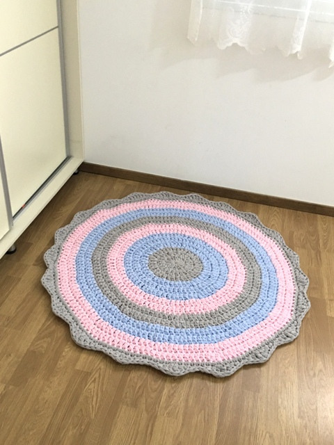 שטיח טריקו עגול- שטיחי הטריקו של חוט השני נסרגים בעבודת יד מחוטי טריקו איכותיים.