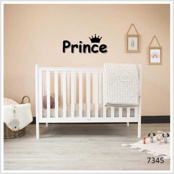 שלט מעוצב לנסיך הקטן Prince עשוי מעץ איכותי צבוע בצבע עץ על בסיס מים + חיתוך עץ בצורת כתר
