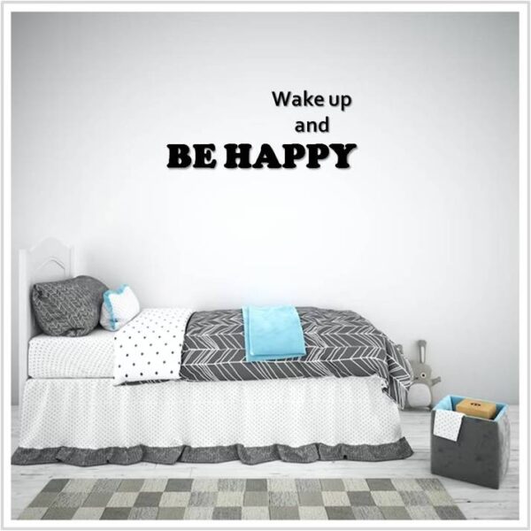 שלט מעוצב דגם wake up and be happy עשוי מעץ איכותי צבוע בצבע עץ על בסיס מים