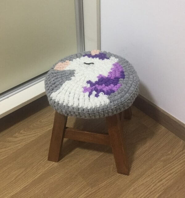 שרפרף מעוצב בסריגה בעבודת יד- דגם חד קרן