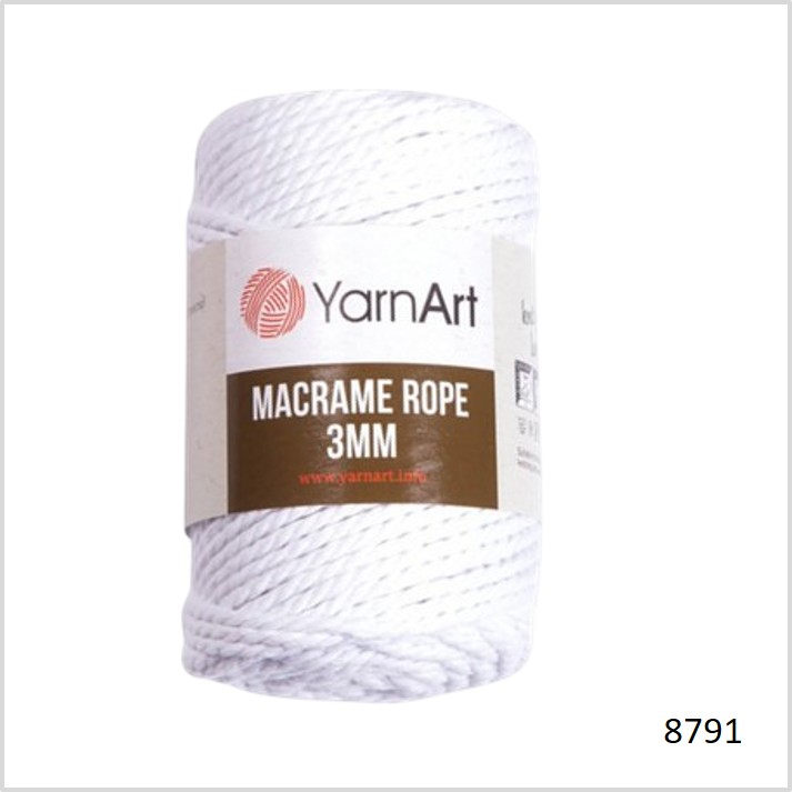 חוט מקרמה- yarnart rope בעובי 3 מ"מ- 751- לבן