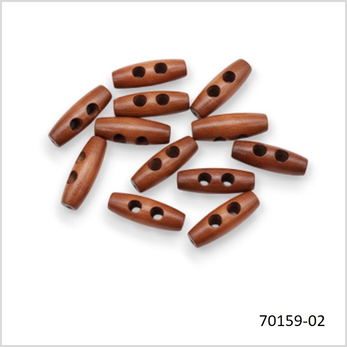כפתורים- כפתור עץ מאורך בצבע חום- 30 מ"מ