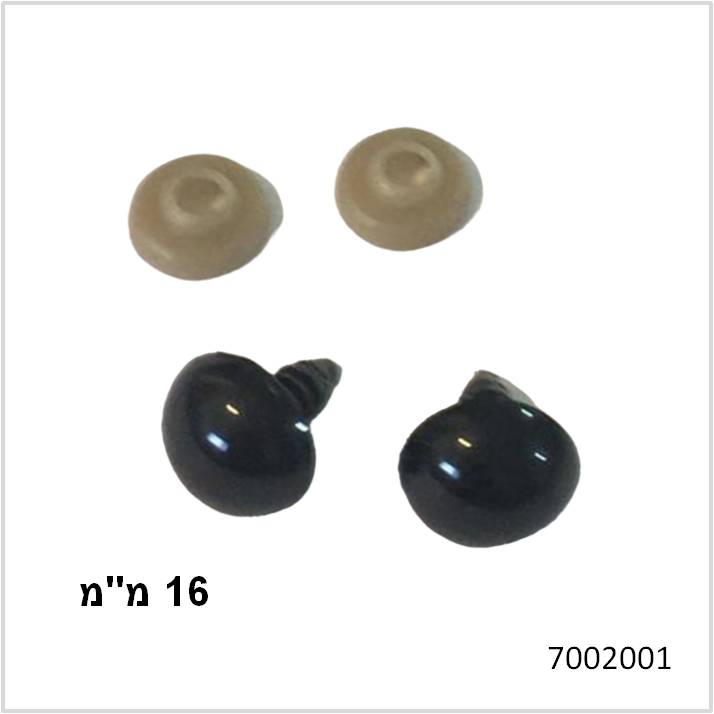 עיניים בטיחותיות לבובות (זוג)- שחור 16 מ"מ