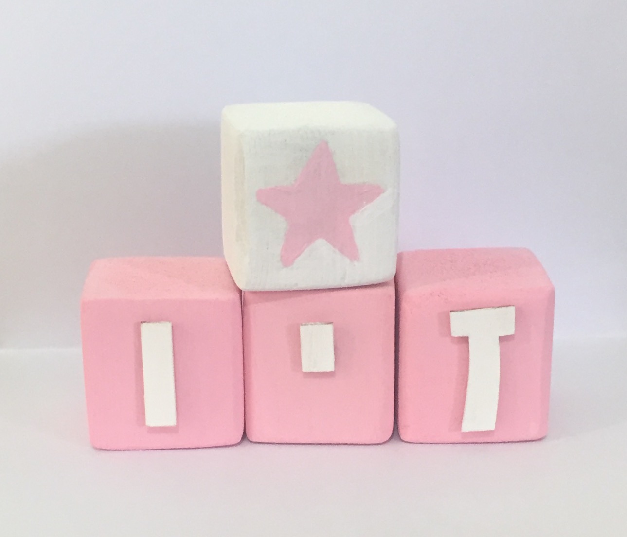קוביות עץ מעוצבות עם אותיות להרכבת שם או מילה