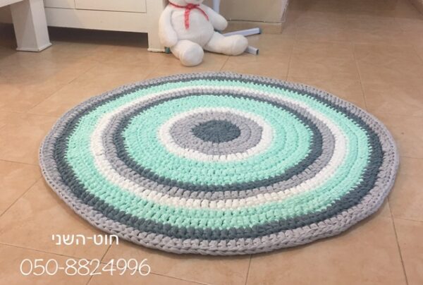 שטיח טריקו עגול- שטיחי הטריקו של חוט השני נסרגים בעבודת יד מחוטי טריקו איכותיים.