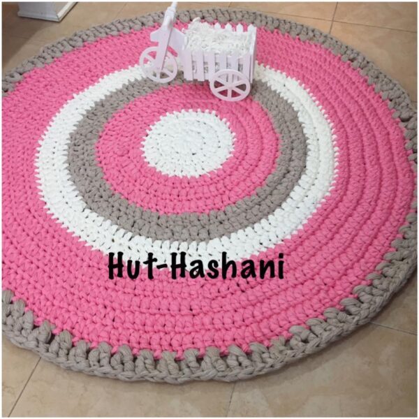 שטיח טריקו עגול- שטיחי הטריקו של חוט השני נסרגים בעבודת יד מחוטי טריקו איכותיים.