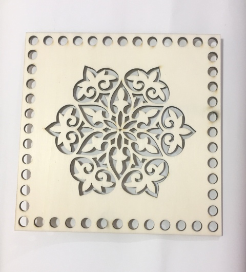 תחתיות עץ לסריגה- ריבוע דגם מנדלה- 20*20 ס"מ